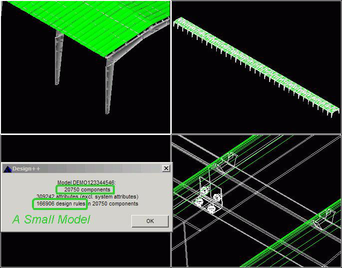 Design++ is successfully used for automated engineering and detailing of buildings and structures with 150,000+ components having any number of features each.
