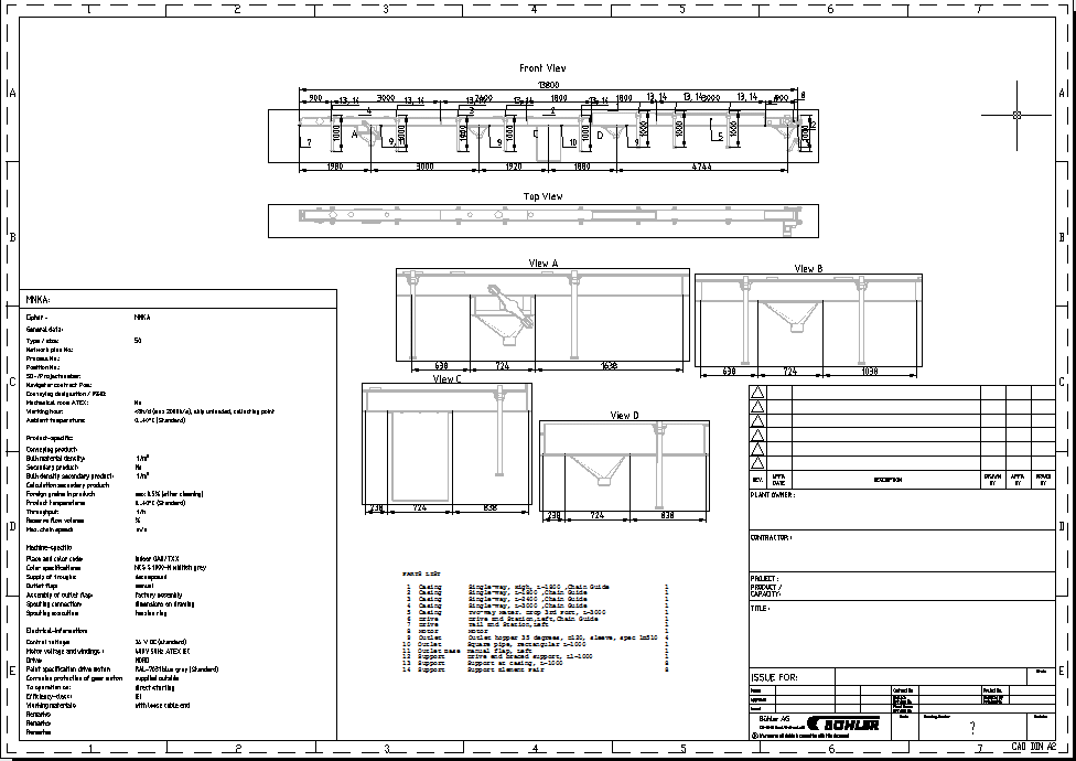 Equipment Configurator's (EqC) design intelligence is built on Design Power's Design++, a knowledge-based engineering platform that supports configuration, engineering calculations, and 3D geometry for large-scale systems. Today EqC's rule bases configure over 500 machine types, such as the Hopper Scale MSDL pictured above and the trough chain conveyor MNKA shown in the EqC-generated disposition drawing to the right. EqC also configures 8 different system level designs and buildings, including the flour bagging system and sample mill building shown below.